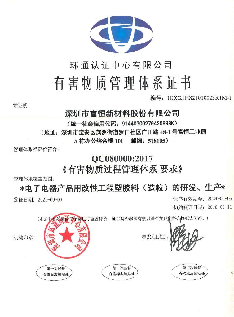 有害物質(zhì)管理體系證書(shū)